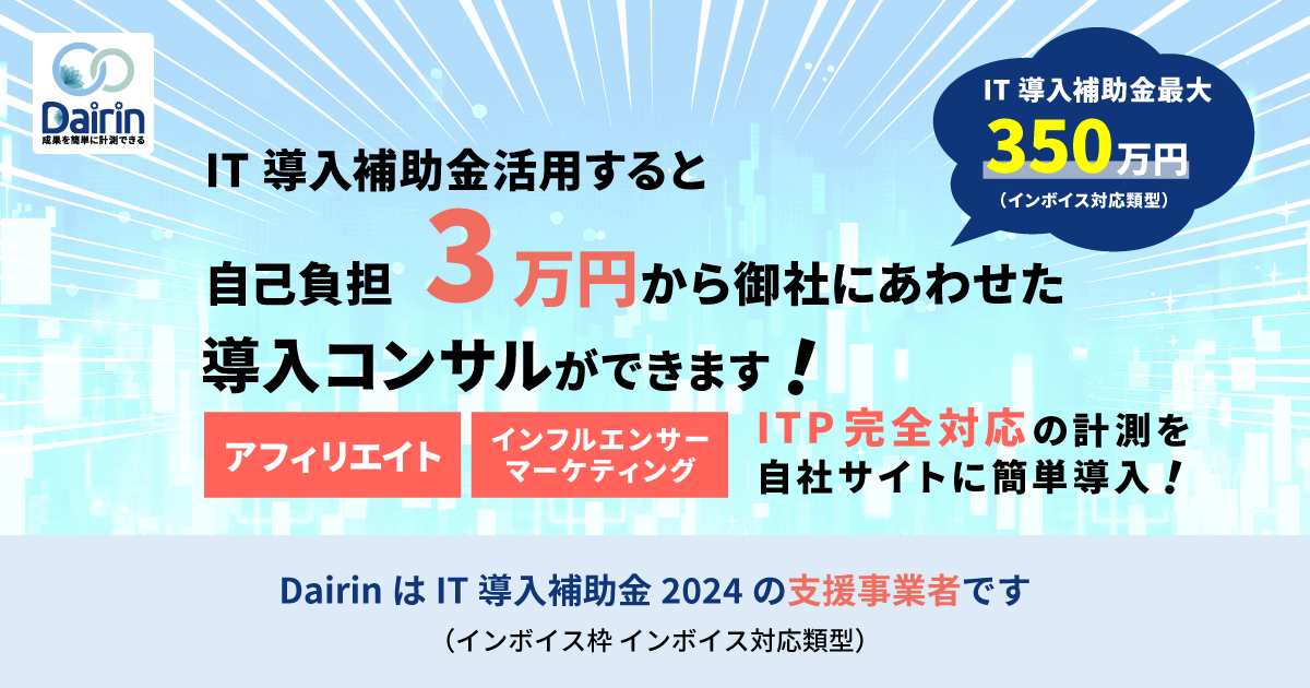 2段階で報酬を設定することで、広告主は効果的かつ柔軟なアフィリエイトプログラムを運営することができます。詳細なガイドラインやサポート情報は、Dairinの公式サイトで確認してください。