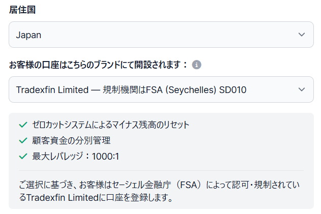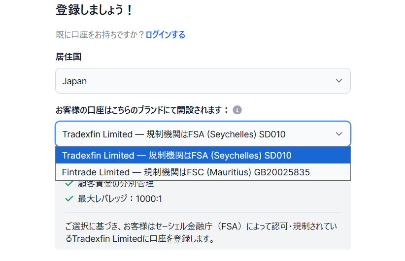 日本から登録するなら、公式推奨の「Tradexfin Limited」を選んでおけば間違いありません。