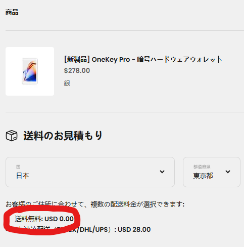 OneKey公式サイトでは、89ドル以上の注文で送料が無料になります。